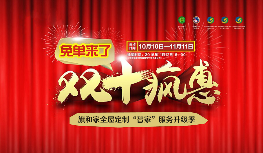 参与“全屋定制十大品牌”旗和家全屋定制,为你精心准备的10月10日-11月11日“双十疯惠,免...
